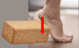ヨガブロックを利用して、バレエの基本ポジションでカカトにしっかり力を入れる動作です。